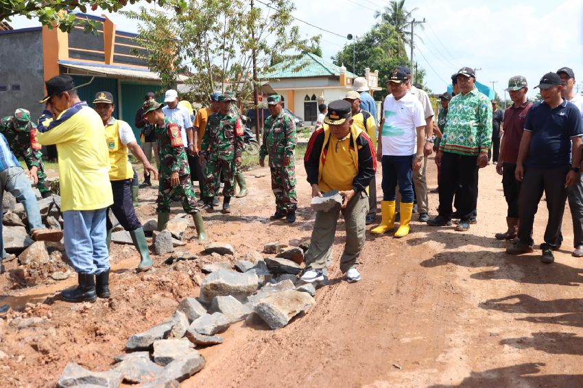 Lamten : Bupati Lampung Tengah Musa Ahmad melakukan Kerja Bakti bersama Masyarakat Rumbia menimbun...