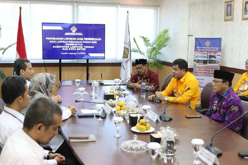 Lamteng : Bupati Lampung Tengah Musa Ahmad menghadiri acara penyerahan Laporan Hasil Pemeriksaan atas...