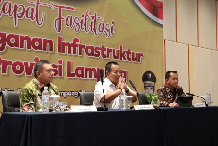 Lampung : Gubernur Lampung Arinal Djunaidi membahas penanganan infrastruktur di Provinsi Lampung bersama Inspektur...